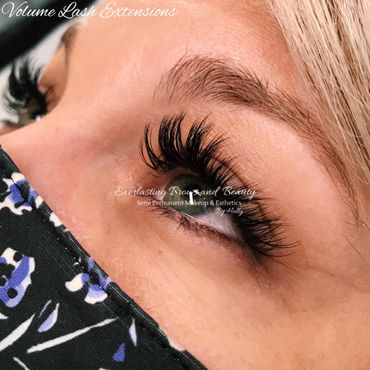 Volume lashes create a dense, full appearance that enhances both length and thickness.